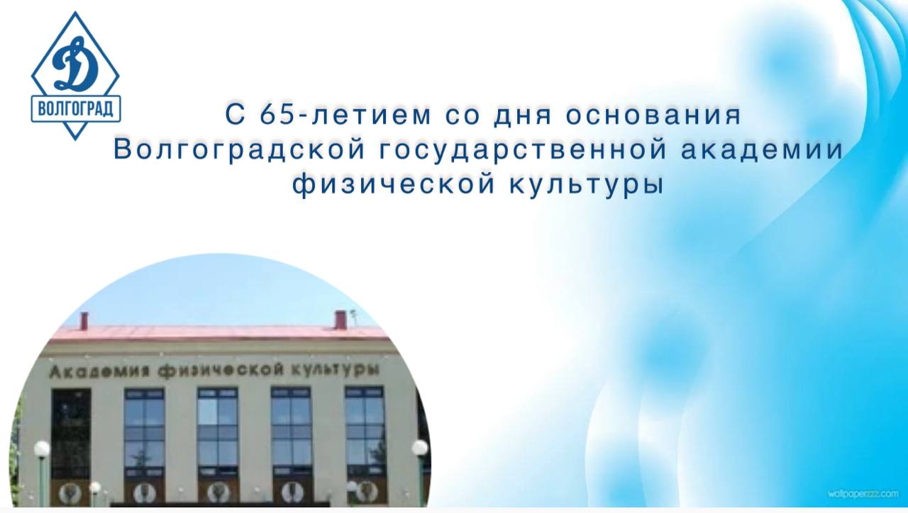 Волгоградская областная организация Общества «Динамо» поздравляет ветеранов, сотрудников, преподавателей и студентов со знаменательной датой - 65-летием со дня основания Волгоградской государственной академии физической культуры